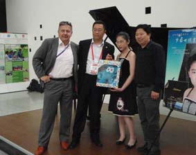 羅維在現(xiàn)場(chǎng)演奏了《莫扎特330奏鳴曲》、《瀏陽(yáng)河》、《拉赫瑪尼諾夫》、《愛之喜悅愛之憂傷》等多首曲目。優(yōu)美的旋律、德國(guó)國(guó)寶-博蘭斯勒鋼琴黃金般的音色,讓現(xiàn)場(chǎng)觀眾大飽耳福?,F(xiàn)場(chǎng)座無(wú)虛席,絡(luò)繹進(jìn)館的游客都被這美妙的琴聲深深吸引,駐足停留欣賞。世博會(huì)主題館部章克勤部長(zhǎng)、主題館設(shè)計(jì)德國(guó)設(shè)計(jì)公司總經(jīng)理雷曼先生及博蘭斯勒鋼琴中國(guó)區(qū)總經(jīng)理方陽(yáng)先生也到場(chǎng)欣賞了羅維的精彩表演。演出結(jié)束后章克勤部長(zhǎng)送給羅維小朋友一個(gè)世博吉祥物-海寶作為六一兒童節(jié)的禮物并祝演出成功。