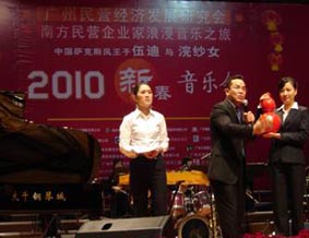 南國的三月,已聞到春天溫暖氣息,春意綠滿枝頭,國內(nèi)首次 以民營企業(yè)家為主題的浪漫音樂之旅就在廣州的鳥語花香里琴聲悠 揚(yáng)。為使得此次音樂之旅更加浪漫美妙,鋼琴支持商大千鋼琴城甚 至出動(dòng)了他們的鎮(zhèn)店之寶——有鋼琴中的“勞斯萊斯”美譽(yù)的德國 國寶-博蘭斯勒鋼琴與中國薩克斯風(fēng)王子伍迪領(lǐng)軍張藝謀打造的“奧 運(yùn)寶貝”中國民樂浣紗女組合來了一次激情的碰撞:動(dòng)人的音樂、 激揚(yáng)的舞蹈、絢麗的服飾,一場中國傳統(tǒng)音樂與西洋音樂的邂逅, 慈善的愛心將帶給民營企業(yè)家新春最有意義和最浪漫的體驗(yàn)。晚會 現(xiàn)場有廣東省政協(xié)副主席、省婦聯(lián)主席溫蘭子,原廣東省政協(xié)副主 席石安海,原廣州市副市長劉念祖,原廣州市副市長陳綺綺,原廣 州市副市長姚蓉賓,廣東省社會科學(xué)院院長梁桂全,廣東省知識產(chǎn) 權(quán)局局長陶凱元,廣東省教育廳巡視員李小魯,廣東省中小企業(yè)局 局長張文獻(xiàn),廣東省委辦公廳副巡視員陳星智,廣東省婦聯(lián)副巡視 員張麗玲,廣東省社科聯(lián)副主席省文化學(xué)會會長李明華博士,廣東 省工商聯(lián)副主席李陽春,廣州市社科聯(lián)主席顧澗清,廣州市工商聯(lián) 副主席吳永洋,廣州市體育局副局長方達(dá)兒,廣州市體育局副局長 關(guān)渭貞,廣東省商業(yè)聯(lián)合會常務(wù)副會長袁偉英女士,增城市副市長 葉鴻,廣州民營經(jīng)濟(jì)發(fā)展研究會創(chuàng)會會長解聘如、王銳,執(zhí)行會長 黃學(xué)明,常務(wù)副會長彭澎以及有關(guān)部門的領(lǐng)導(dǎo)蒞臨觀摩。并且該活 動(dòng)從社會責(zé)任感和公益角度出發(fā),音樂會加入了一個(gè)特別有意義的 “溫暖行動(dòng)”拍賣單元——“救助一位孤兒,改寫一個(gè)人生”。其 由廣東省婦女聯(lián)合會、廣東省婦女兒童基金會、廣東省兒童福利會 共同組織的一項(xiàng)極具社會意義的活動(dòng)。而博蘭斯勒鋼琴也為能在如 此重大意義的活動(dòng)上獻(xiàn)上自己的“黃金音色”而深感榮幸!