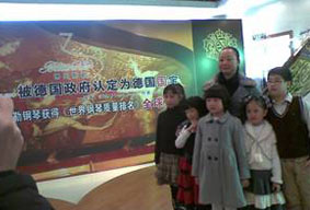 整個博蘭斯勒展區(qū)在經(jīng)典“飛天”圖案背景的烘托下,顯得大 氣磅礴、金碧輝煌,烘托出了博蘭斯勒鋼琴享有“黃金音色”之稱 的美譽(yù),并吸引了眾多人士前來參觀,甚至有其它世界名品的參展 商與展會工作人員都特地前來展區(qū)一睹博蘭斯勒鋼琴的奢華風(fēng)范與 典雅氣質(zhì)。其中,價值288.8萬并全球僅限一臺的博蘭斯勒 fisherArt系列三角鋼琴更是成為了全場的超級明星。它經(jīng)典大氣 的外觀、精致絕倫的做工、無與倫比的“黃金音色”以及油畫大師 獨(dú)一無二的靈感創(chuàng)作,無一不使人驚嘆。不少觀眾得知它的到來后 ,專程趕來與其合影留念,近距離感受這個被稱為鋼琴中的“勞斯 萊斯”,歐洲皇室貴族的超級奢侈品——德國國寶博蘭斯勒鋼琴。 19日,展會舉行到第三天時,由5名小學(xué)生舉行的現(xiàn)場鋼琴演奏表 演,更是將整個會場氣氛推至頂峰,其中兩位小朋友的一曲四手聯(lián) 彈,更是轟動全場。前來參觀欣賞的家長及學(xué)生無不嘖嘖稱贊,同 時對博蘭斯勒及其旗下品牌歐米勒、塞勒都表現(xiàn)出了極大的興趣, 不少家長還紛紛表示要去當(dāng)?shù)亟?jīng)銷商東莞樂博琴行的店中做進(jìn)一步 的了解挑選。