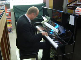 米勒市長是博蘭斯勒總裁的好友,這次來南京,特地來 老朋友的經(jīng)銷商處看看,樂博琴行胡經(jīng)理熱情的接見了米勒 市長,向市長介紹了博蘭斯勒的旗下的兩個(gè)品牌:塞勒和歐 米勒。胡經(jīng)理得知米勒市長是一位音樂愛好者后,邀請米勒 市長特地彈奏了一曲。米勒市長在試彈完琴后,給予博蘭斯 勒高度的評(píng)價(jià)。