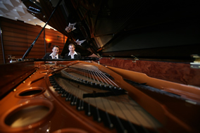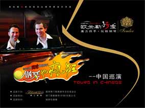10年前 , 他們正式組成“歐米勒孖寶(Pianotainment)” 鋼琴組合 , 那是他們走向輝煌的開始:熟練自如的雙手在黑白分明 的琴鍵上翻飛跳躍,一曲曲快樂的音符就從他們的指間順流而出 。隨著歐米勒孖寶5張CD的成功問世 , 他們隨之聲名鵲起 , 在柏林 、巴黎、倫敦、紐約、拉斯維加斯等世界著名大都市的國際舞臺上 演奏。如今歐米勒孖寶已蜚聲樂界 , 成為歐美鋼琴明星,給古老的 鋼琴演奏形態(tài)注入了新的活力 , 并多次摘走包括英國牛津鋼琴挑戰(zhàn) 賽的“最佳創(chuàng)意獎”等在內(nèi)世界各地的大小獎項 , 藝術事業(yè)蒸蒸日 上,如日中天。