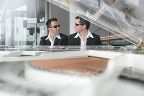歐米勒孖寶:大寶·斯蒂芬( Stephan Weh )與小寶·麥 克(Marcel Dorn)出生于德國阿爾卑斯山脈的一個小山村。從小 一起學鋼琴并一同參加各種音樂會。他們很早就表現(xiàn)出了超越常人 的音樂天賦:時常在貝多芬和莫扎特曲目的演奏中自由添加一些音 符, 令鋼琴教授們煩惱不已;大寶·斯蒂芬(Stephan Weh)在 學校的音樂會上演奏方法不僅與眾不同,而且在演奏時加入了即興 的發(fā)揮而技驚四座;小寶·麥克(Marcel Dorn)的琴譜上寫滿教 授對演奏原始音符的各種要求 , 但這些工作都是徒勞的,因為他們 仍然我行我素、一如既往的遵循著自己的演奏習慣去演繹曲目和詮 釋音樂, 他們認為一成不變的演奏形態(tài)不足以發(fā)揮音樂的魅力, 只有無拘無束的演奏方式才能作出最出色的音樂。他們 在 慕尼黑 音樂學院深造并榮膺大學獎章,兩個人經(jīng)常喜歡在一起無比默契的 聯(lián)袂演奏一支支動聽的曲子 , 珠聯(lián)璧合的四手聯(lián)彈給觀眾帶來無數(shù) 的歡樂。