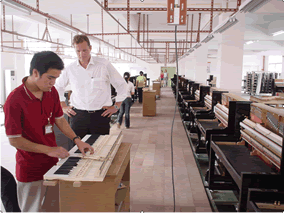 7月5日晚,德國博蘭斯勒鋼琴公司總裁博思進先生抵達廣州。全然不顧旅途的勞累,6日一大早即興致勃勃的參觀德國博蘭斯勒鋼琴與廣東匯豐樂器合作建設(shè)的新工廠,對工廠正在工作的技術(shù)人員進行了技術(shù)要點講解,并對新工廠的建設(shè)表示非常滿意。隨后,總裁一行參觀了博蘭斯勒鋼琴廣州專賣店。