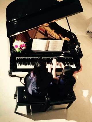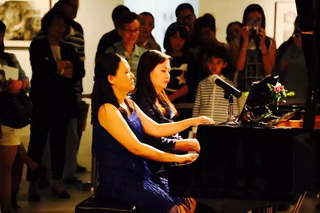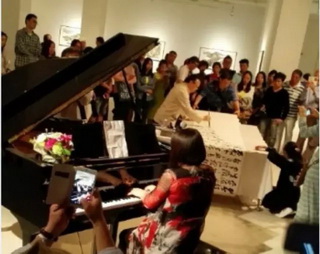 17日畫展現(xiàn)場,主辦方同時邀請了上海音樂學院旅歐青年鋼琴家唐瑾,朱和,謝亞雙子,江瀅攜手德國國寶博蘭斯勒旗下歐米勒鋼琴共同演繹書法與鋼琴的對話。