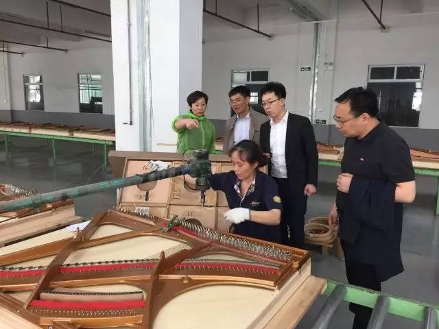 22日, 青島中德生態(tài)園管委會投資促進局副局長田維平、中德聯(lián)合集團副董事長、青島西海岸投資促進有限公司董事長、總經(jīng)理包振宇等一行來到廣州歐米勒鋼琴生產(chǎn)基地進行交流訪問。