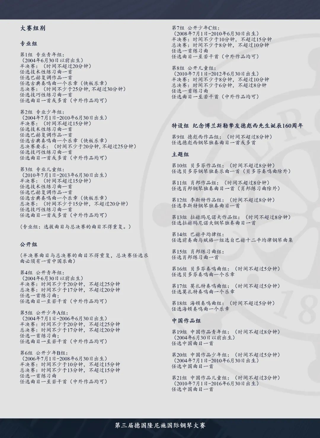 兩年一屆的鋼琴文化盛會,獲獎的選手將會被邀請到德意志聯邦駐華大使館參加每年一次的圣誕音樂會。